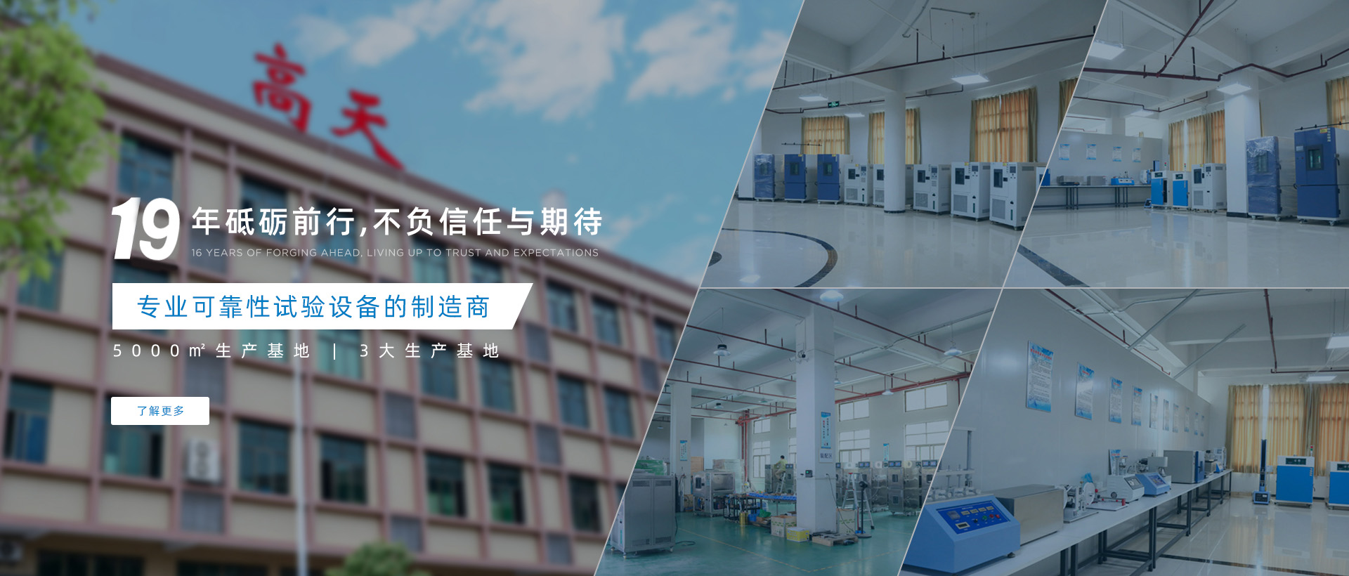 東莞市高天試驗(yàn)設(shè)備有限公司是一家可靠性試驗(yàn)設(shè)備的制造商,我們專(zhuān)注于可靠性試驗(yàn)已有19余年,在此期間,我們竭盡所能,努力為客戶提供完善的實(shí)驗(yàn)室規(guī)劃方案,匹配質(zhì)優(yōu)價(jià)廉的試驗(yàn)設(shè)備。高天擁有完整的研發(fā)團(tuán)隊(duì),其中有很多人都躋身試驗(yàn)設(shè)備行業(yè)多年,能為顧客提供完善的技術(shù)方案,以幫助廣大客戶在確保其產(chǎn)品品質(zhì)的前提下,有效降低經(jīng)營(yíng)成本,提升經(jīng)營(yíng)競(jìng)爭(zhēng)優(yōu)勢(shì)。高天生產(chǎn)的設(shè)備種類(lèi)眾多,同時(shí)擁有實(shí)用新型專(zhuān)利證書(shū),銷(xiāo)售范圍覆蓋全國(guó)。公司自成立以來(lái)堅(jiān)決以精美的外觀設(shè)計(jì),認(rèn)真務(wù)實(shí)的工作精神,良好周到的后續(xù)服務(wù),贏得了客戶良好的口碑。我們將一如既往,堅(jiān)持以“誠(chéng)信經(jīng)營(yíng)”為...